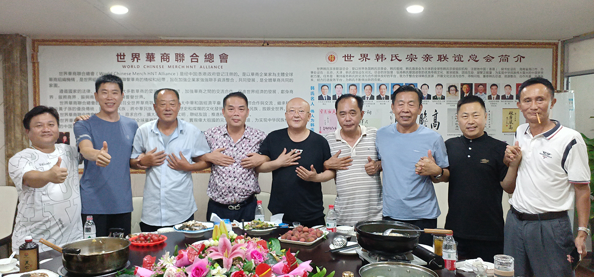 一场以“聚亲情 弘祖德 谋发展”为主题的韩氏宗亲联谊座谈会在世界韩氏宗亲联谊总会海南秘书处举行,参加座谈会的宗亲有:世界华商联合总会主席、世界关公文化协会会长、世界韩氏宗亲联谊总会总会长韩健光;海南分会执行会长韩飞;助理韩挺定;世界韩何企业家协会副秘书长何适;办公室主任韩海光等,世界韩氏宗亲联谊总会总会长韩健光主持会议并讲话大家在座谈会,现场互相介绍、畅叙宗情,共话友谊,在韩氏会所,内心却温暖无比,大家纷纷合影留念!